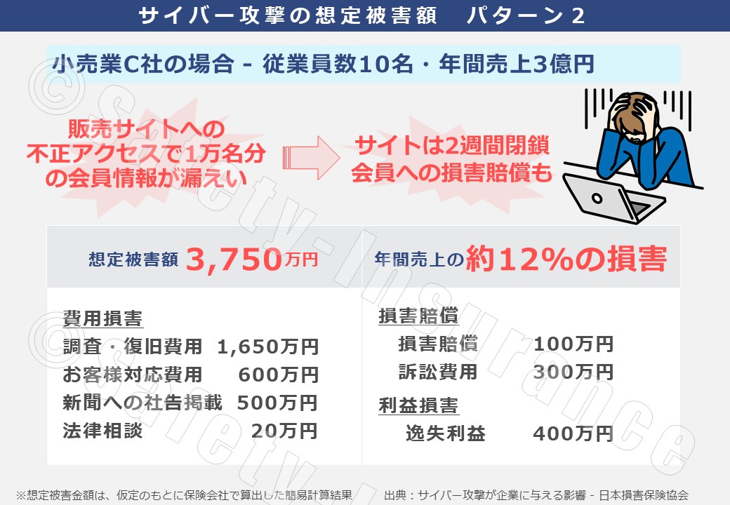 また、保険金としてカバーは出来ませんでしたが、今回のサイバー事故によってイベントや宣伝自粛などの間接的な損害(利益損害)も発生しております。