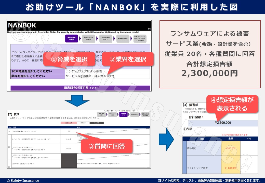 そこで、情報処理推進機構(IPA)は2023年1月20日に情報セキュリティ関連費用の可視化をサポートするお助けツール「NANBOK」(Next-generation-scenario in Assembled Notes for security administrator with Bill calculator Optimized by Kawamura model)を公開しました。