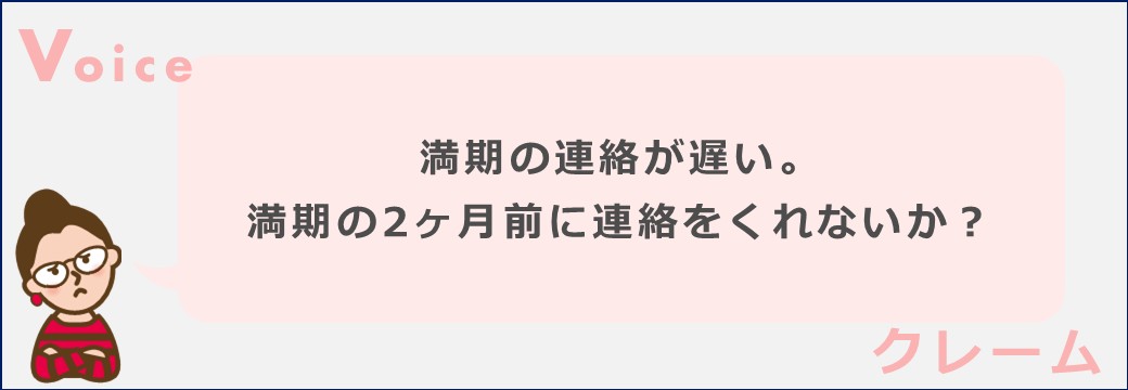 満期の連絡が遅い。もっと早く連絡をくれないか?