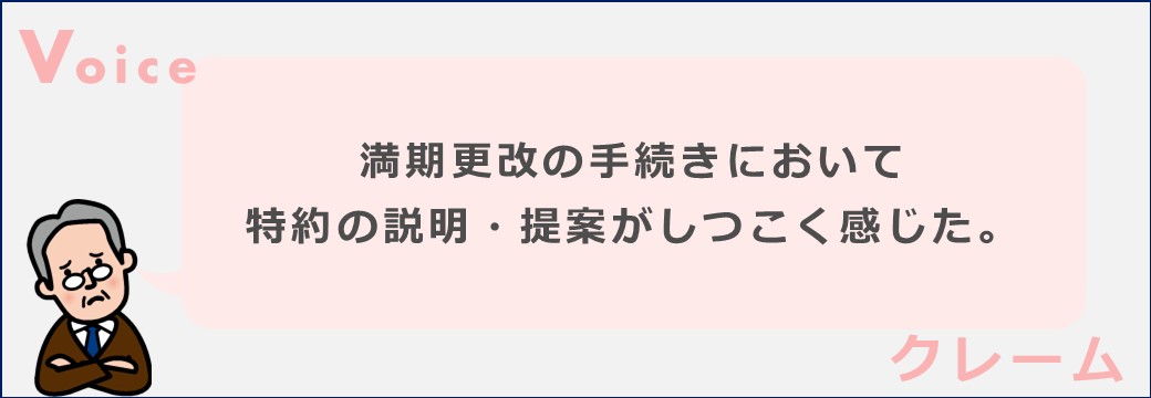 満期更改の手続きにおいて、特約の説明・提案がしつこく感じた。