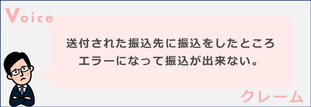 担当者から送付された振込先に振込をしたところエラーになって振込が出来ない。