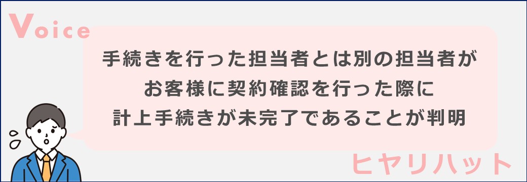 その際、当該契約の計上手続きが未完了であることが判明しました。