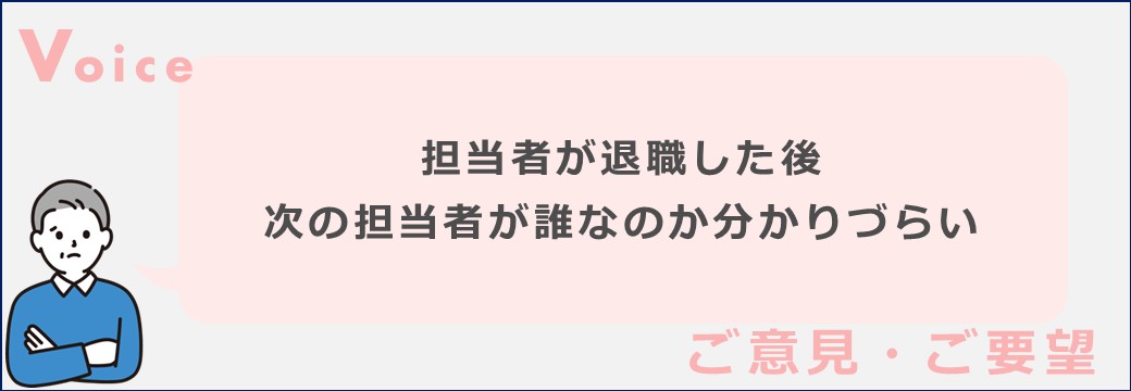 担当者が退職した後、次の担当者が誰なのか分かりづらかった。