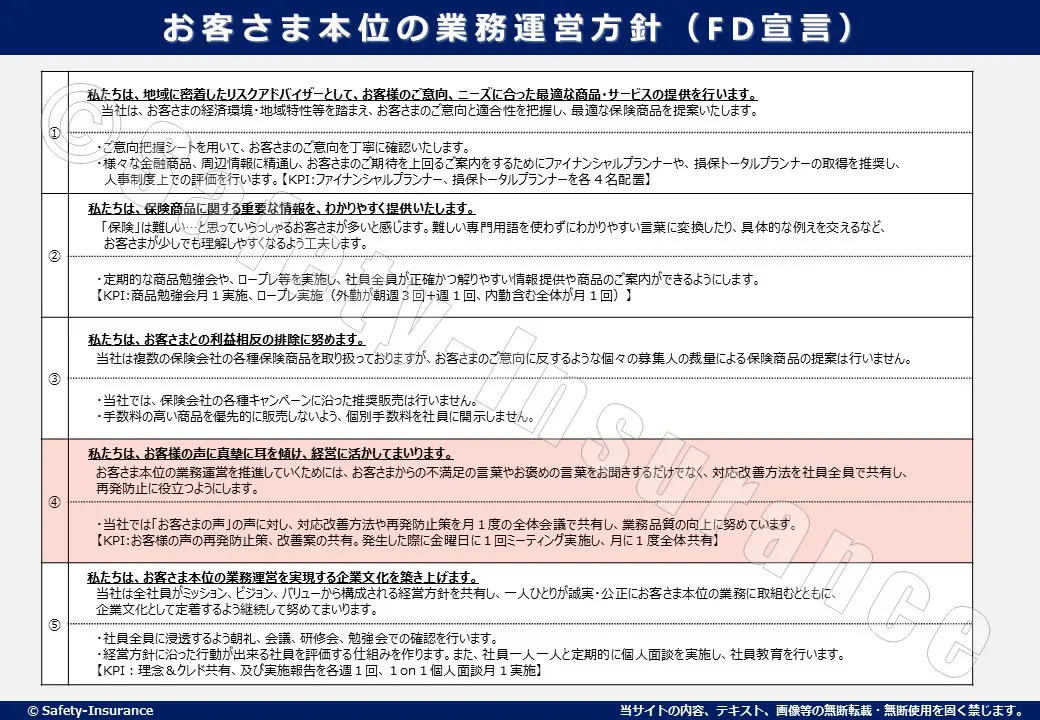 特に、金融庁が定める「顧客本位の業務運営に関する原則:金融庁 (fsa.go.jp)」と、弊社の「お客様本位の業務運営方針(FD宣言)」との対応関係が、お客様に伝わりやすい形になる様に修正をしました。