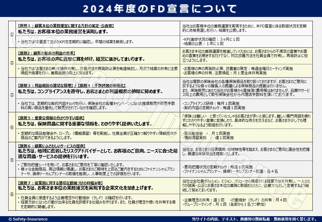 当社はお客様本位の業務運営を実現するために、本FD宣言に係る取組状況を定期的に点検見直しを行い、結果を公表します。