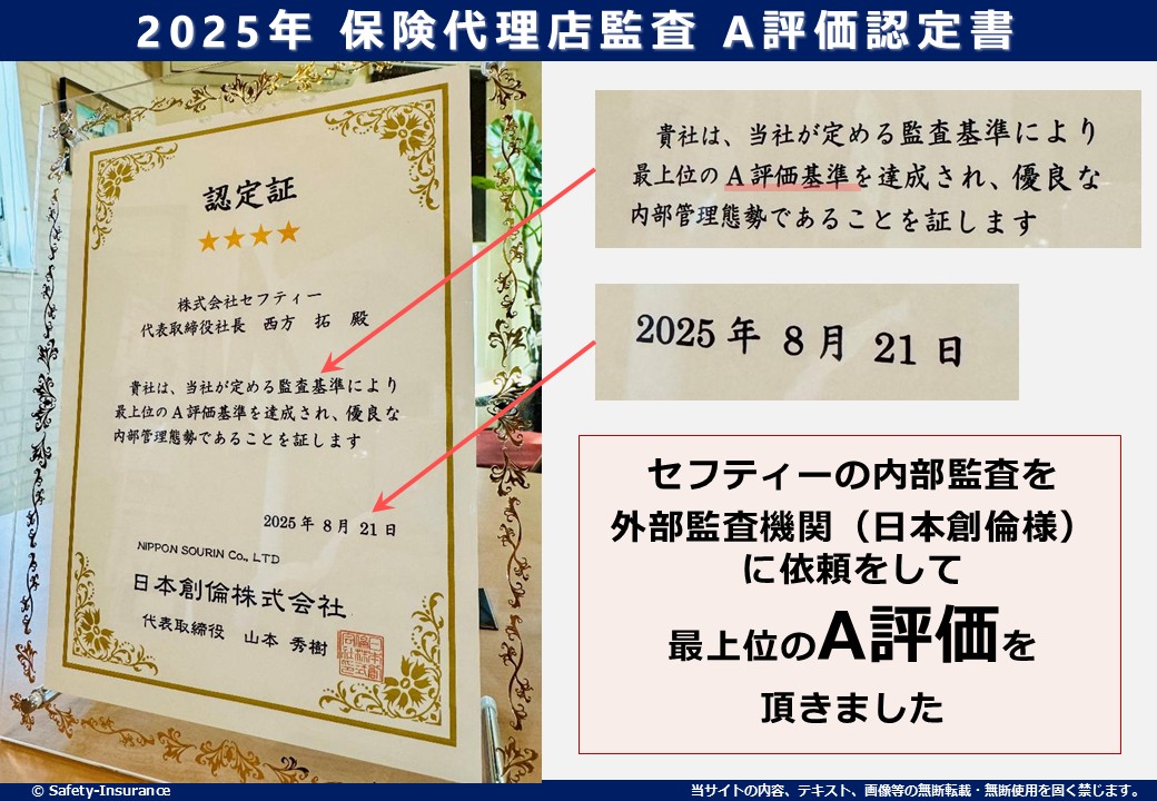 保険代理店内部監査を外部監査機関に依頼し最上位A評価を頂きました!【2025年8月更新】
