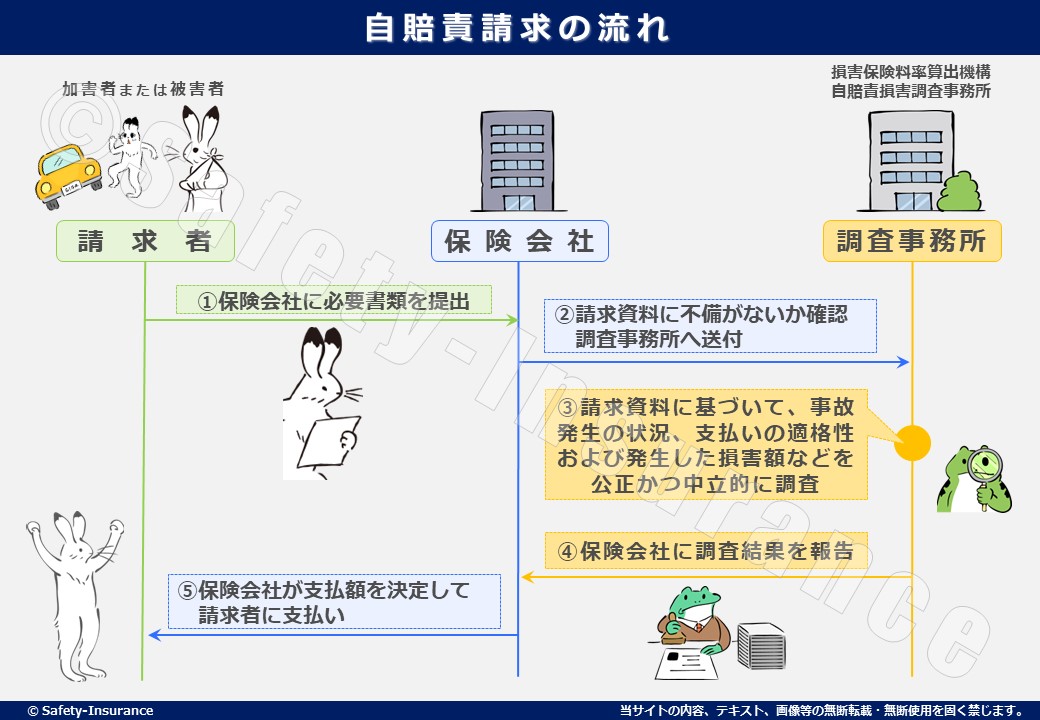 自動車保険契約があり、自賠責の加入が確認されれば、お客様の了解を得て、自動車保険契約会社がお客様に代わって示談交渉をします。