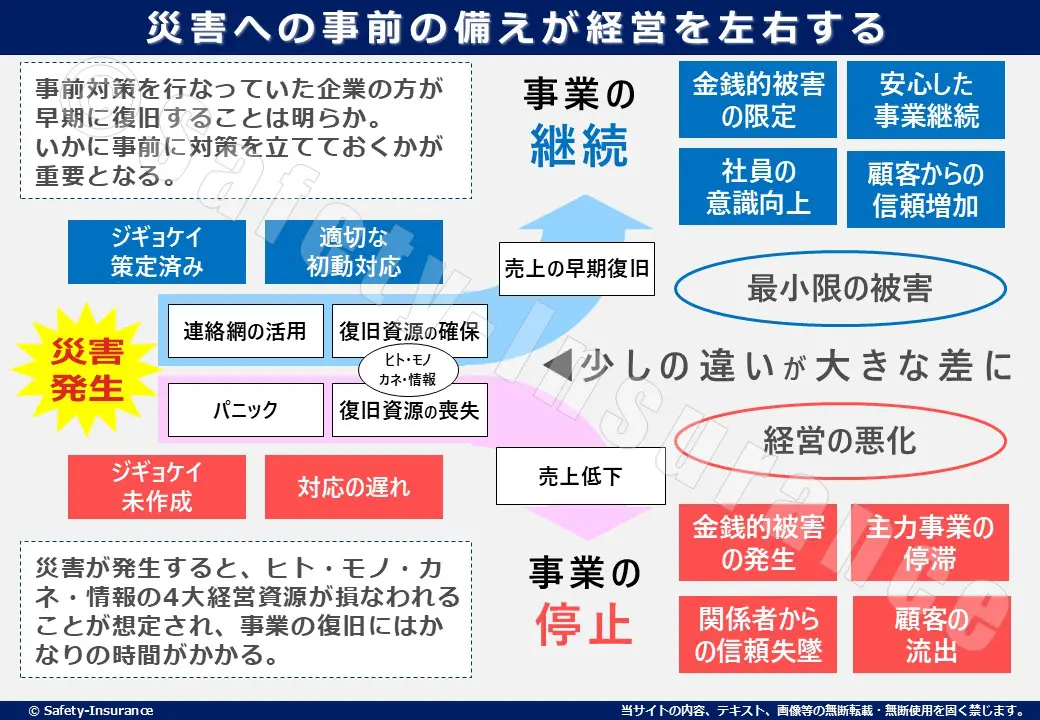大企業と違って、中小企業には余裕資金や人員が限られているため、ひとたび災害が起きると立ち直るのが難しいという現実があります。