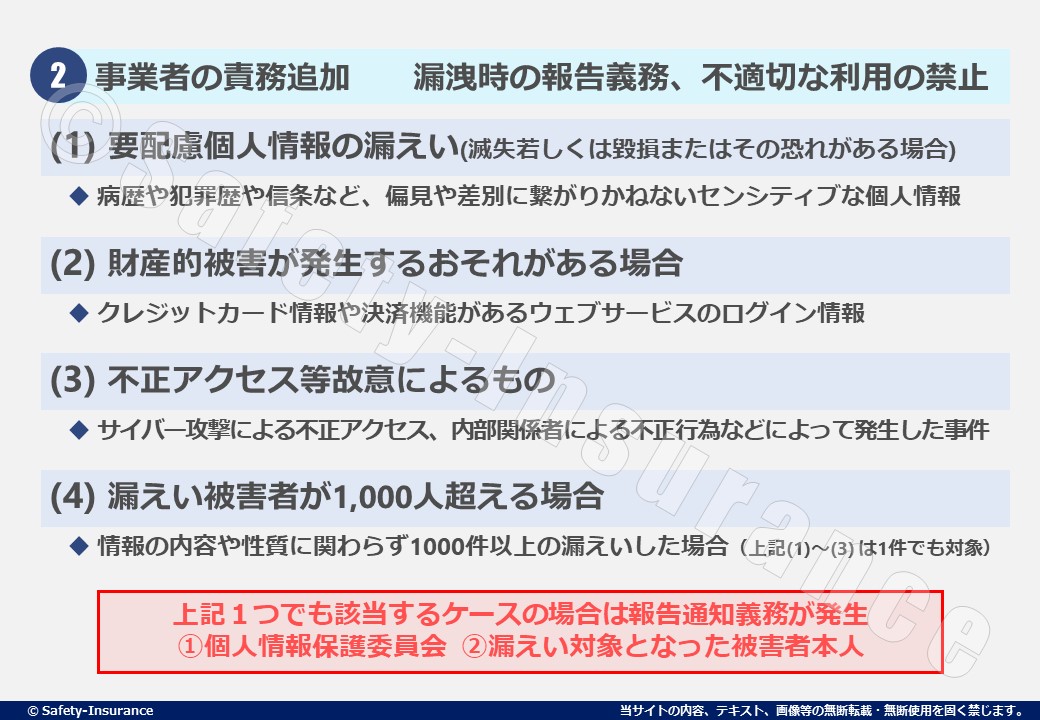 これがなかなか大変で、上記1~3については、1件でも漏洩してしまったら、報告の義務が発生します。