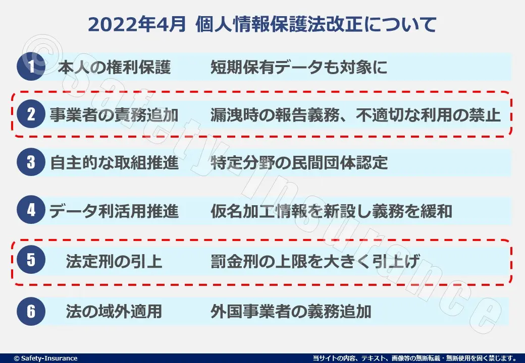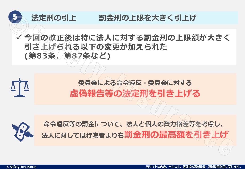 特に注意が必要なのが②事業者の責務追加、⑤法定刑の引上げです。