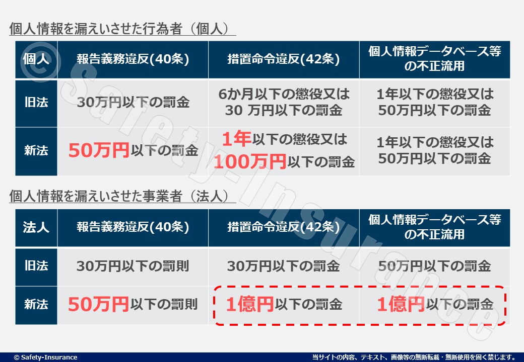 今までは、仮に個人情報保護委員会の措置命令に違反した場合は、6ヶ月以下の懲役または30万円以下の罰金、報告義務違反した場合は30万円以下の罰金でした。