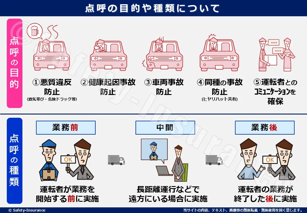 運行管理者は、運行の安全(運転者ご自身、歩行者、他の車両の安全)を確保するために、点呼の実施と記録保存を行う必要があります。よって、点呼を怠れば行政処分の対象となるリスクがあります。