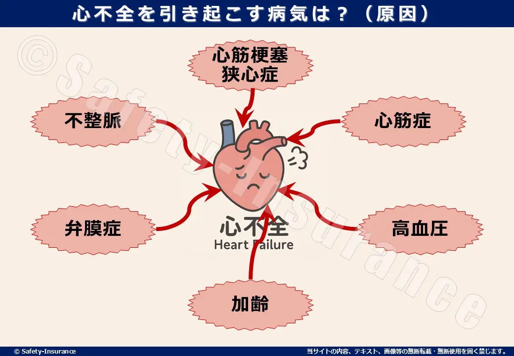 つまり「心不全」とは、1つの病気を指すのではなく、心臓のさまざまな病気や加齢が原因で起きる状態(結果)となります。