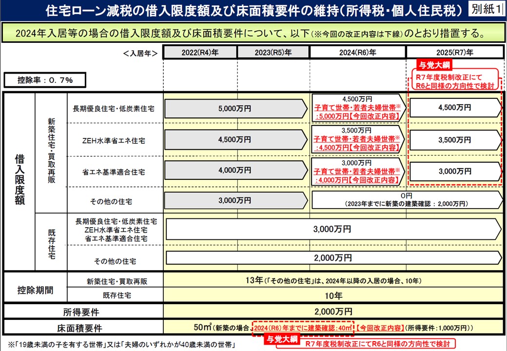 【参考】住宅ローン減税の借入限度額及び床面積要件の維持 | 国土交通省