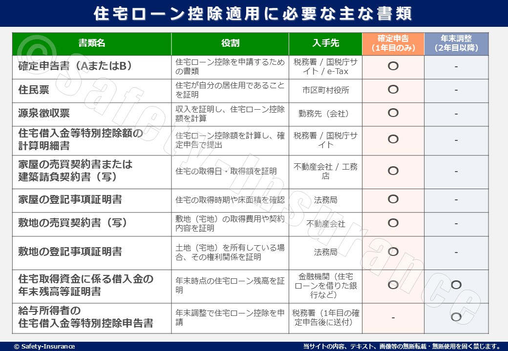 | 書類名 | 役割 | 入手先 | 確定申告(1年目のみ) | 年末調整(2年目以降) |