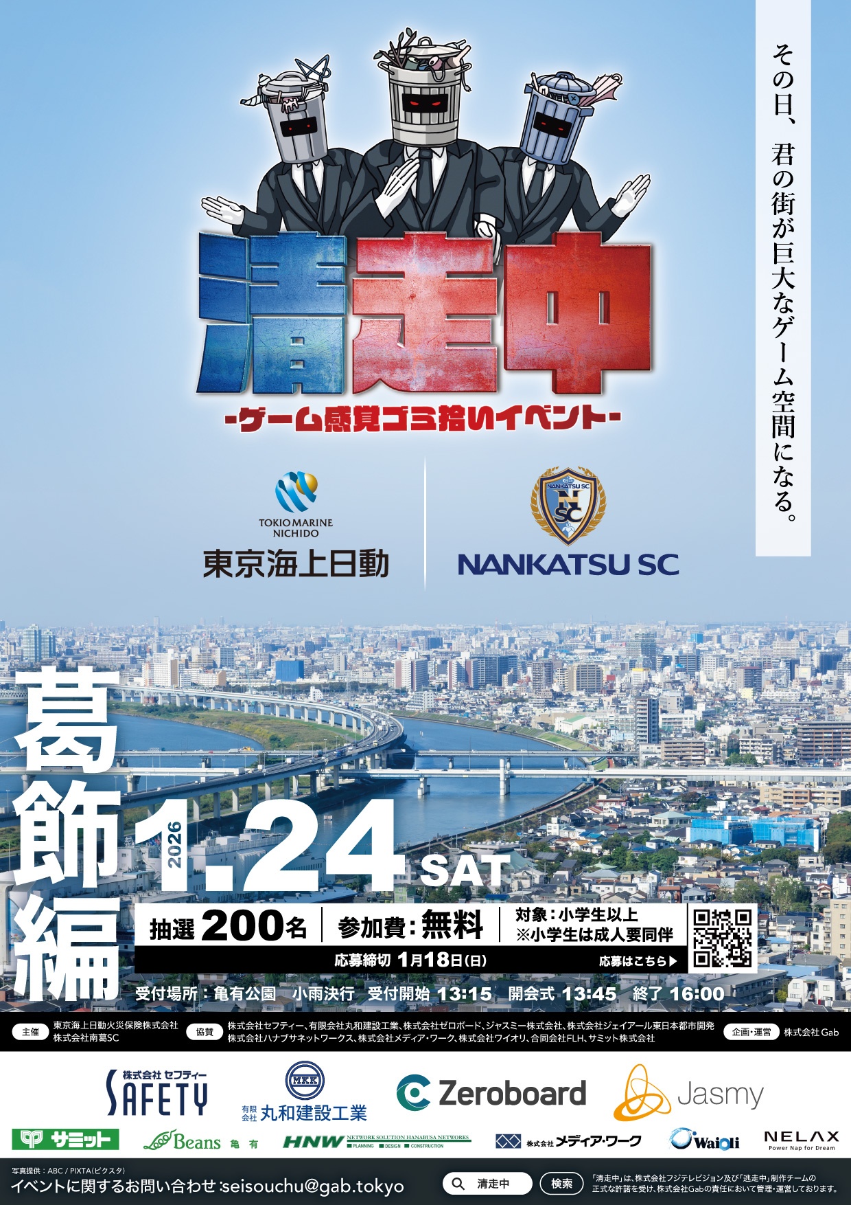 2026年1月24日、葛飾区亀有で開催される体験型清掃イベント 「清走中(せいそうちゅう)」。