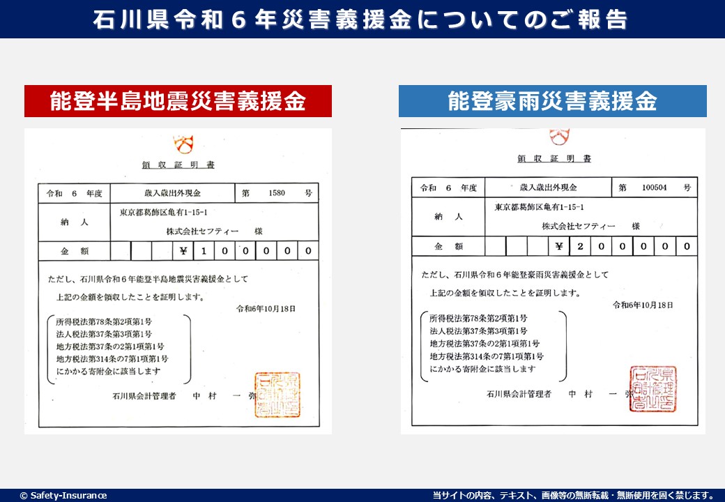 セフティー創業者である西方 二男は石川県の出身で深く心を痛めており、保険に携わる従業員も地震や豪雨の被害に身につまされる思いでした。