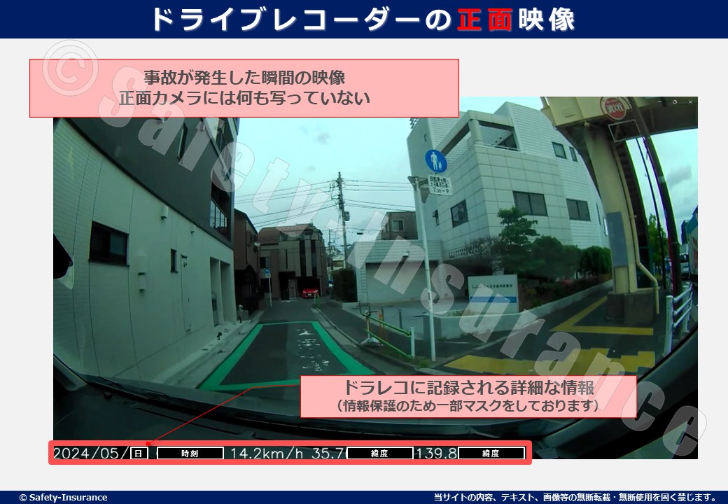 次に映像を見ながら事故が発生した経緯や状況を確認しましたが、なんと正面カメラの映像では事故状況が全く分かりませんでした。
