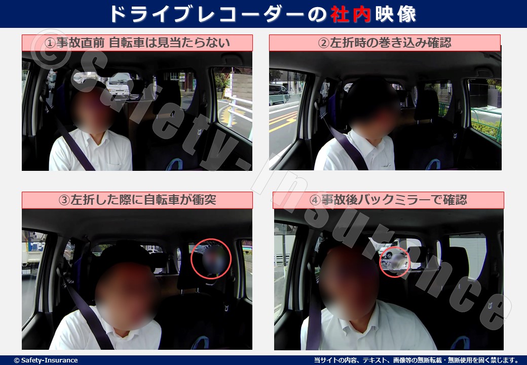 すると、左折時に巻き込み確認を行っているが死角になっており見えない位置に被害者がいたこと。そして事故の瞬間の映像も残っていました。