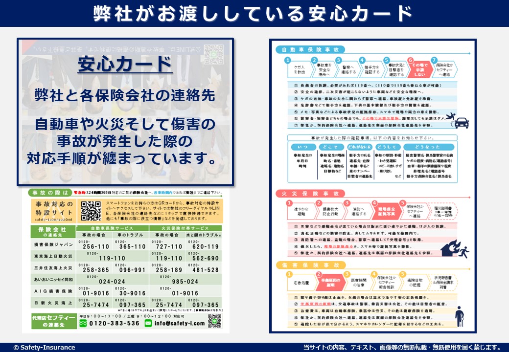事故対応については弊社がお客様にお渡ししている『安心カード』の手順に則り以下のとおり対応しました。