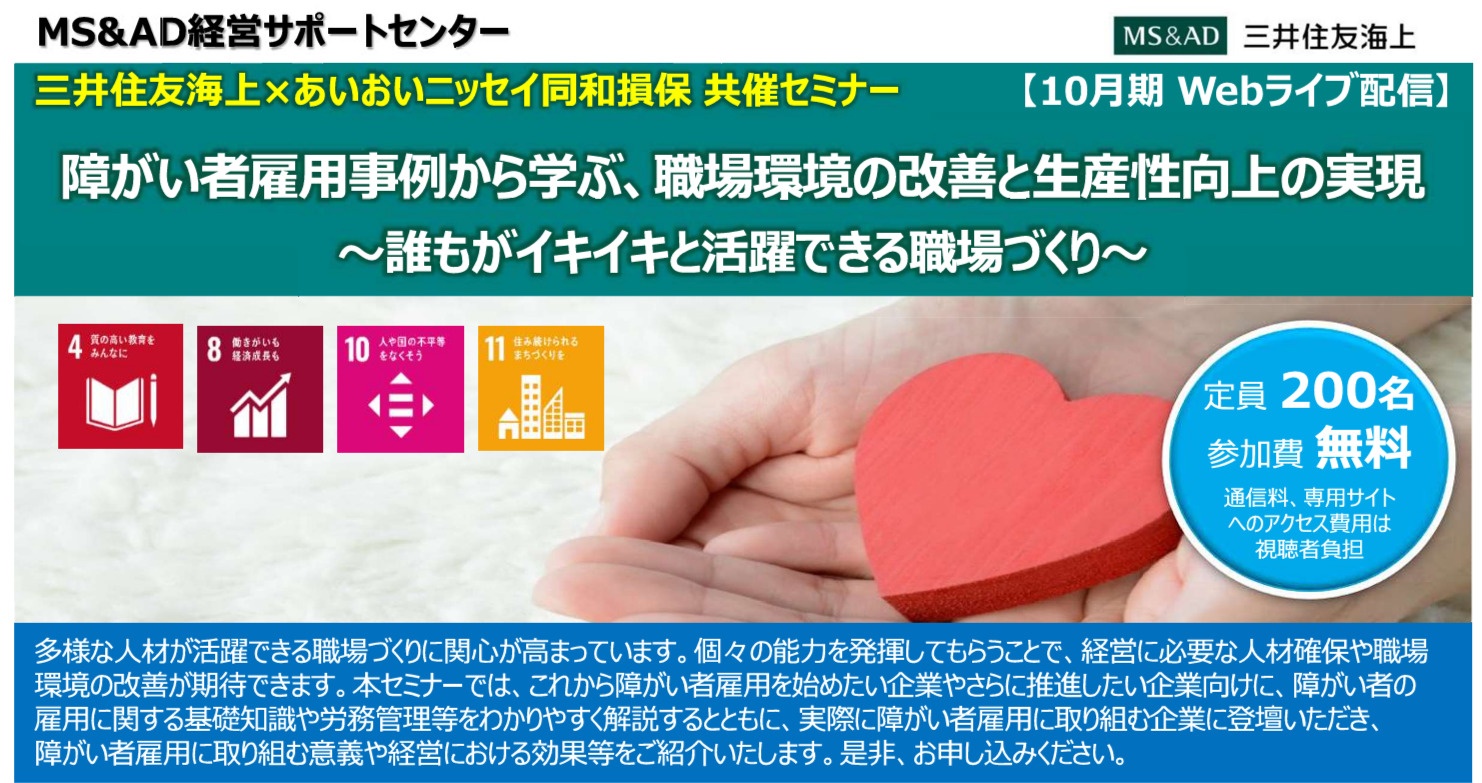 三井住友海上火災保険株式会社主催の参加費無料Webオンラインセミナーをご紹介します。