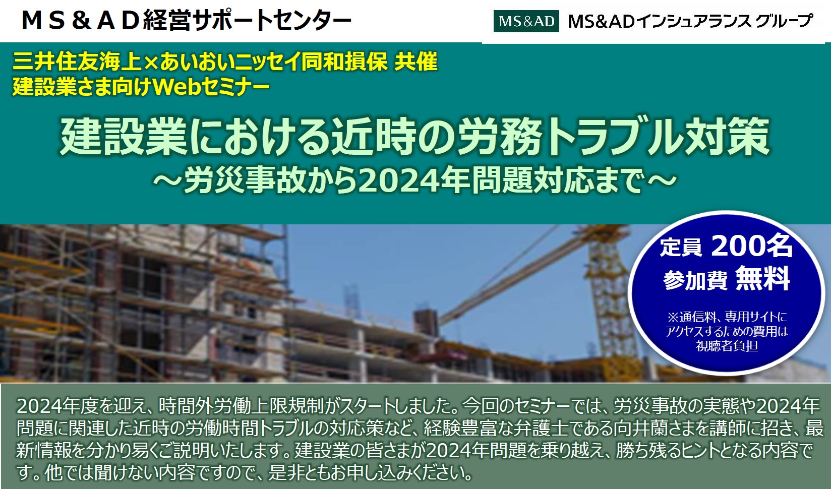 三井住友海上火災保険株式会社主催の参加費無料Webオンラインセミナーをご紹介します。