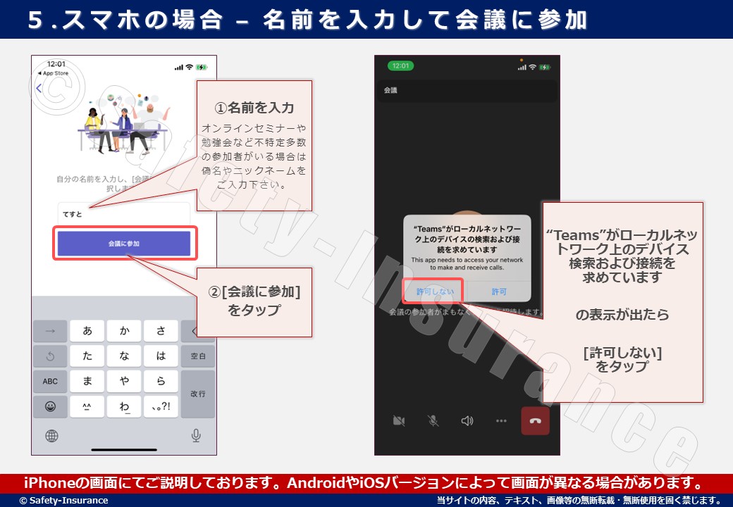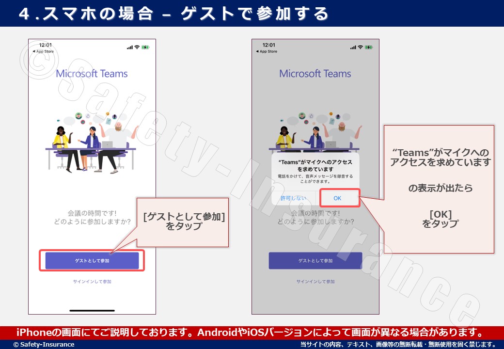 スマートホン(スマホ)からTeamsにゲスト参加する場合