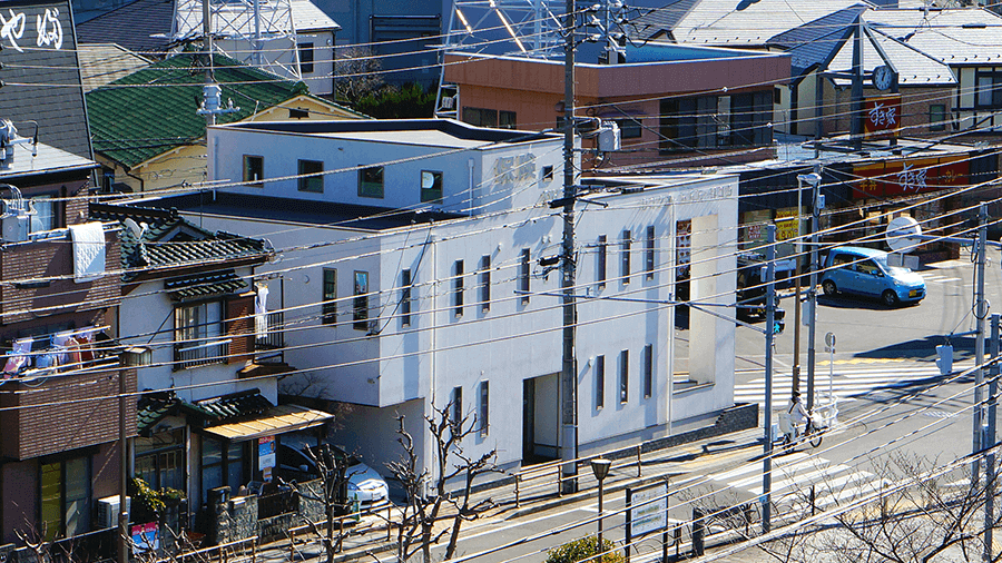 曳舟川親水公園、曳舟十三橋交差点際にあるセフティー本社の外観