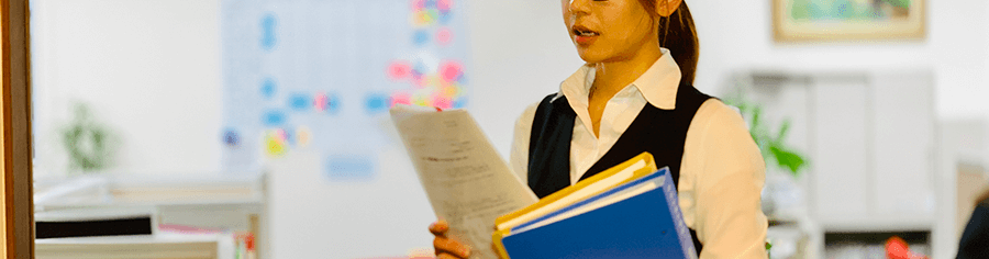 自社オフィスで仕事をする女性スタッフ