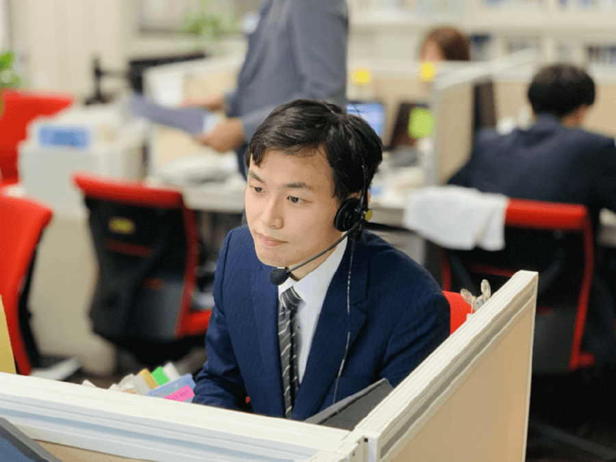 電話応対をする男性スタッフ