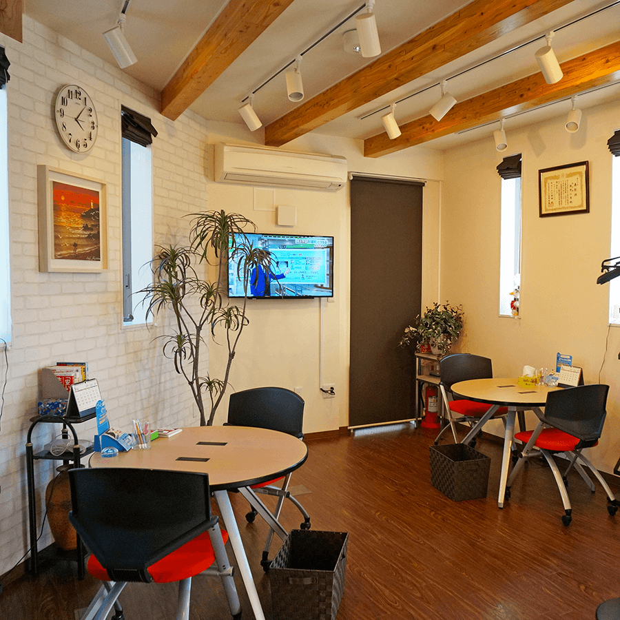 店舗の相談スペースの様子。天井には化粧梁があり、ナチュラルで相談しやすい雰囲気。