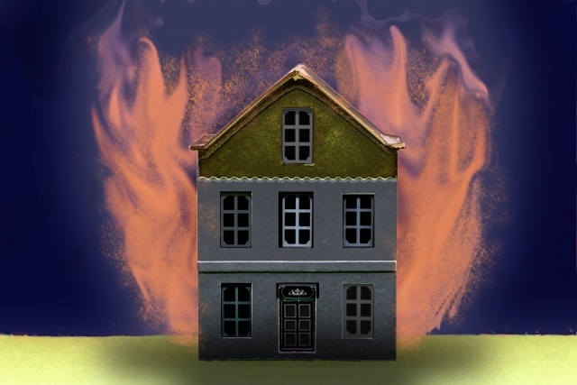 八割方出来ていた新築住宅が火災で全焼した。火の気の無い建築中の建物で、出火が深夜にて、放火が原因だと断定された。